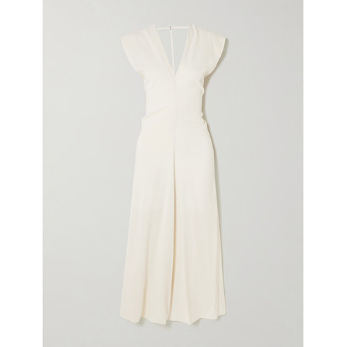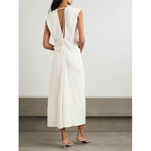 Hot Tags: Elfenbens ermeløs dyp V midikjole